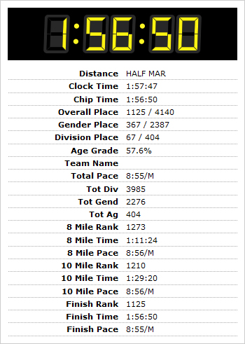 It took 22 half marathons for me to break two hours, and then I did it again in race #23, seven days later. Woo-hoo!